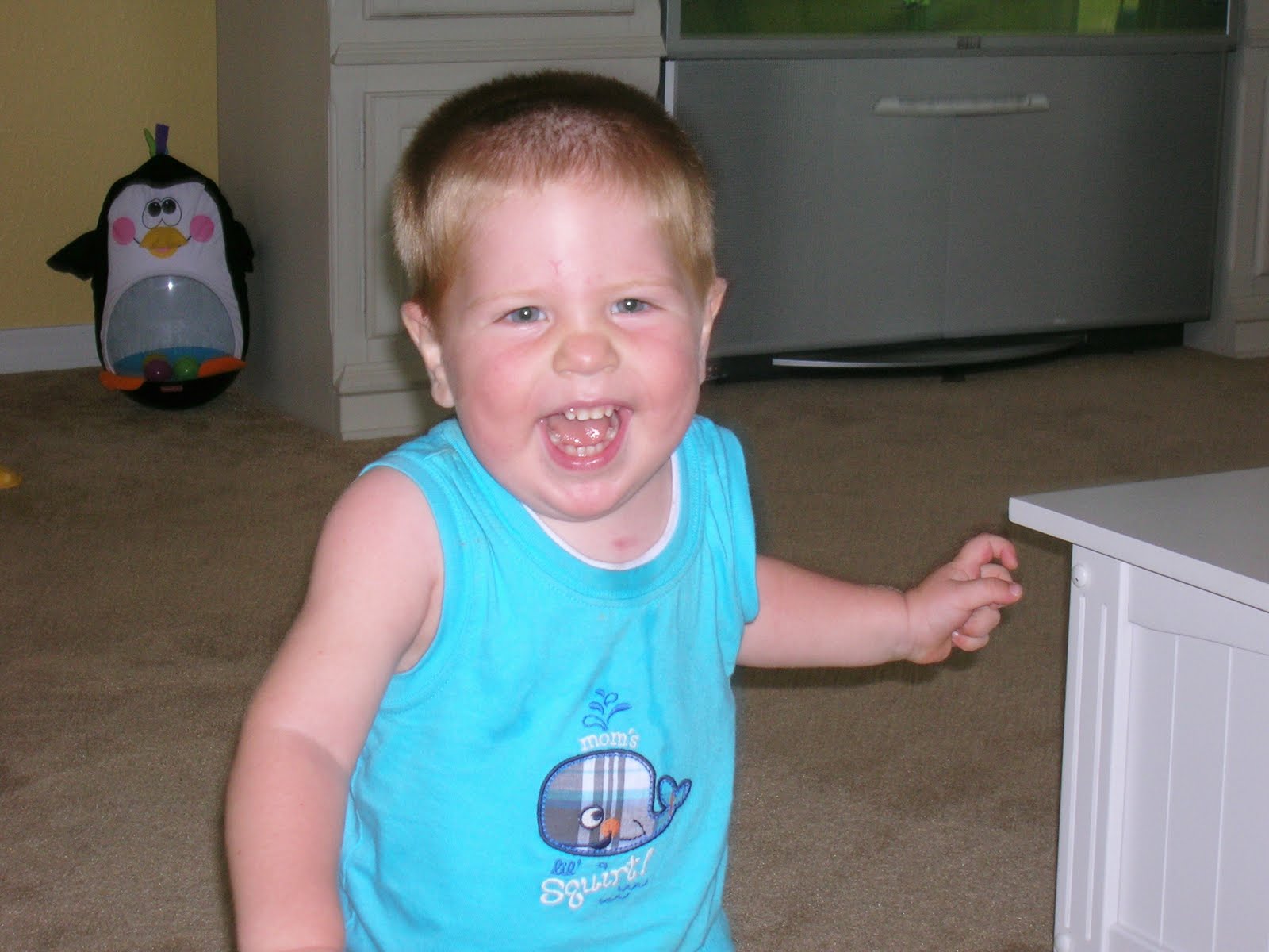 His loud shrieks & contagious giggles emphasized his determination...