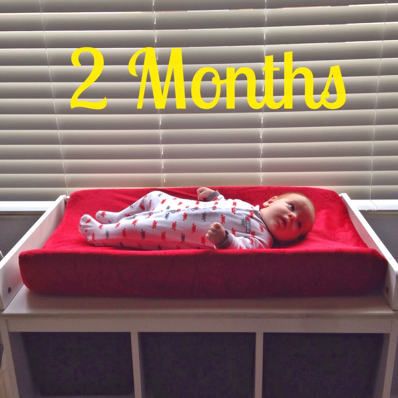 I snuck in a 2 month photo! His 3 month size sleepers are becoming short. He's starting to grin more these days too!